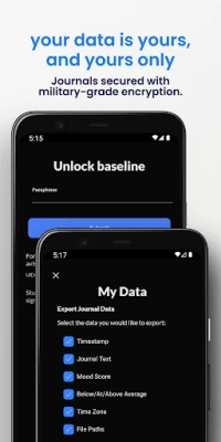 我们深知您在 baseline 中记录的信息极其私密和敏感,因此对数据安全采取了最高标准。所有您在 baseline 中撰写和上传的内容都经过严密加密,确保只有您自己可见。即使是 baseline 的开发团队也无法查阅您的私密日记。此外,您还可以通过设定安全口令,对应用内数据进行额外保护,防止他人未经授权地访问您的设备。更值得一提的是,baseline 致力于提供全面的心理健康支持,包括通过"baseline 援助基金"为用户提供财务上的帮助,弥补可能出现的资金缺口。最重要的是,baseline 将始终保持百分之百免费,永远不变。