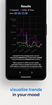在 baseline 中,您可以随时记录心声,用两种不同的量表精准描绘当日的心情。重要的瞬间可以通过上传图片和截图来珍藏。为了确保您的记录习惯得以坚持,baseline 提供贴心提醒功能,助您轻松达成日记撰写与心理健康目标。应用内精美的可视化图表,让您一目了然地回顾所有情绪日志,观察情绪的起伏变化。每周参与心理健康问卷,更能细致追踪焦虑、抑郁和压力等指标的长期趋势,从而获得更全面的自我认知。