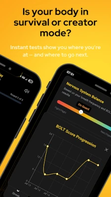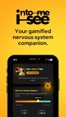 Into-Me-I-See将您的成长之旅变得充满动力与乐趣。通过30秒呼吸频率测试和BOLT分数,您可以清晰了解自身二氧化碳耐受基线,并追踪每日、每周、每月的进步。经验值(XP)、成就徽章和等级系统将您的每一次练习都化为一次游戏挑战,让您持续突破自我。更进一步,Into-Me-I-See独创了"调节、激活、显化"三阶段方法,助您重塑神经回路,构筑全新的现实。从平衡阴性极性的"调节"阶段,到点燃阳性极性、采取行动的"激活"阶段,最终通过能量的融合实现"显化",将您渴望的生活召唤而来。